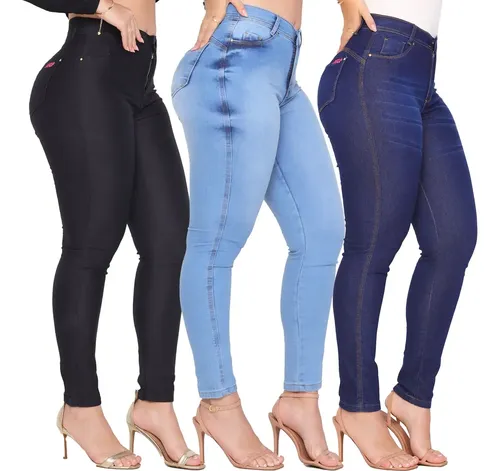 Kit 3 Calça Jeans Feminina Cintura Alta C/ Elastano Lycra